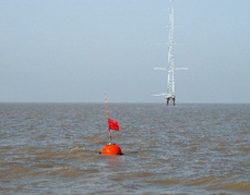 图1.3.1 江苏沿海波浪站分布与响水近海波浪站SBF3-1型海上浮标系统现场图