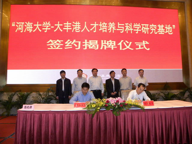 参加签字仪式的有大丰港经济区管委会主任倪向荣、盐城市港口局局长朱新龙,副局长诸裕良、赵飞,大丰市港口局局长褚国栋,副局长葛曙光、施晓钟等。会议由葛曙光副局长主持,倪向荣主任、朱新龙局长、郑金海院长就双方前期的合作及以后的全面合作关系分别做了重要讲话。随后由郑金海院长、褚国栋局长代表双方签订合作协议书,朱宏亮书记、倪向荣主任代表双方揭牌。