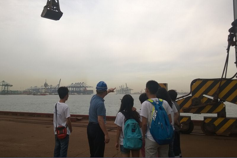 实践团得到了以母校95届校友张卫国和10届校友董凯为代表的校友们的热烈欢迎,校友们带领实践团成员实地参观了散杂货码头,集装箱码头,石油化工码头等工程。交谈中,队员们了解到天津港是一个人工港,在建港初期,遇到了泥沙回淤的问题。作为建港委员会委员的严恺先生,主动承担起了对天津港回淤问题的研究。在天津港工作期间,严恺先生艰苦朴素、亲力亲为,实地考察并测量了多组实际数据;刻苦钻研、勇于创新,发现港口回淤的泥沙只能靠疏浚来清除,才能维护港口的正常使用,并提出了减少港口内多余的水域面积,提高疏浚效率来达到减淤的目的。严恺先生这一研究,开创了淤泥质暗滩兴建深水港的先河,为天津新港的发展提供了科学依据。上世纪七、八十年代至今,一代又一代河海人投身港口建设第一线,在港口设施建设,主航道整治等方面均作出了卓越的贡献。