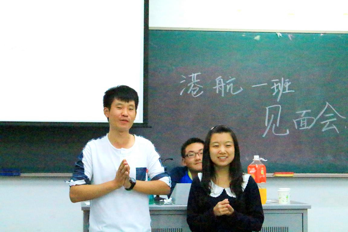 港航2班的特色是超大信息量。同学们入场就坐完毕后,主持人宣布见面会开始并带头作自我介绍,随后同学们也积极地上台,介绍自己和家乡,并在黑板上留下了自己的联系方式。这为同学们以后的相互联系和了解打下了基础。满满一黑板的姓名和电话号码预示了这个班级的信息交流一定是第一位的。