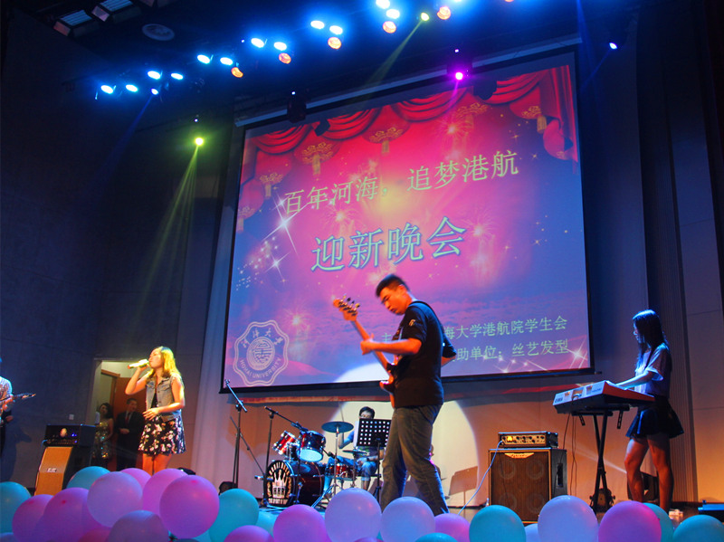 晚会分为两个篇章。第一篇章是百年河海情。摇滚社激情洋溢的演奏给晚会奠定了热情洋溢、欢欣活泼的氛围。港航院13级的十佳好声音张冬阳、陈腾纯两位同学演唱的《你是我心内的一首歌》,博得现场阵阵掌声。在14级新生的乐器合奏中,第一篇章伴着阵阵掌声和欢呼圆满结束。第二篇章青春港航梦在热情欢快的爵士舞中开启。研究生新生带来的啦啦操和恰恰舞合舞体现了极高的艺术水平和专业素养,充分展示了港航学子的风采。在晚会的最后,港航院国防生新生全体带来的《我爱港航》将晚会推向最高潮,伴着国防生嘹亮的歌声,本次迎新晚会圆满结束。
