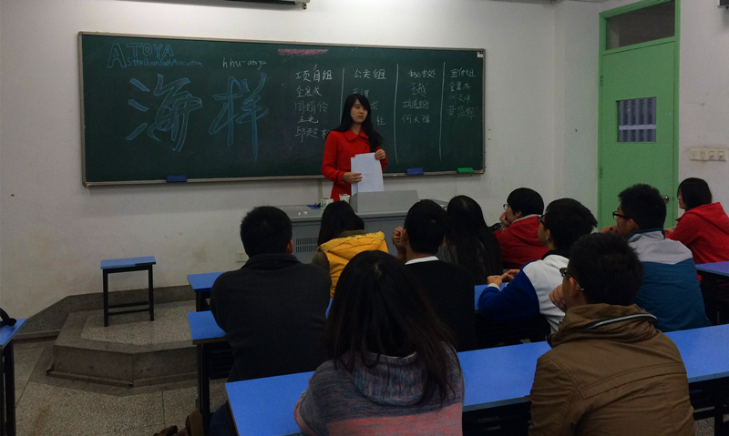 2014年11月5日下午,重新改组后的海样青年协会在致用305举行了第一次新生见面会。本次见面会旨在说明社团目前的现状,让新老会员相互交流并且确定部门分组。海样协会的全体会员和13级辅导员赵倩老师出席本次会议。