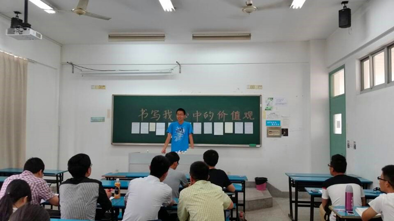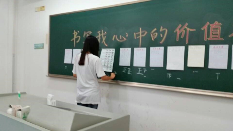 为了积极响应港航院“我为社会主义核心价值观代言”的号召,6月24日,2013级港航1班特别组织了“书写我心中的社会主义核心价值观”书法撰写评比活动,用书写的方式,让每个同学体会、领悟社会主义核心价值观,港航1班班导师秦杰老师受邀参加了此次活动。