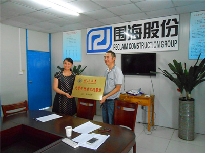 在汪总的安排下,队员们一早驱车前往今天实践的第一站:浙江围海建设集团温州分公司在温州桥头镇的瓯江治理工程现场。瓯江治理工程是浙江围海建设集团承建施工的水利类工程,工期两年,施工路线长达8.3公里,项目总投资约1.75亿。在会议室里,教授级高工宫灵杰给队员们讲解工程上的有关情况以及近期的几个工程项目和总体发展战略,同时还不厌其烦地为大家讲述工程建设中的附属问题,包括工程的资金、政策、审批流程以及与工程相关的各单位制衡关系等。之后,在宫教授和项目负责人李经理的带领下,队员们来到工程施工现场,依次参观了瓯江治理工程三个代表性的工段,并查阅了相关图纸,在现场结合实物听宫教授讲解防浪墙、混凝土灌注桩、高压旋喷桩、水泥搅拌桩等之前只在书本上了解的名词。听完宫教授的讲解,队员们不禁感叹“纸上学来终觉浅,绝知此事要躬行”的道理,一项造福社会的水利工程项目的顺利实施,绝不仅仅是从书本上学来的各类力学和材料学知识,更多的是实际操作过程中的学以致用和经验积累。与此同时,队员们也了解到,浙江围海集团每年也在欧洲足球赛程