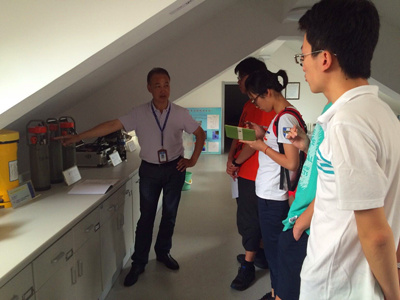 在老师的带领下,队员们参观了海洋科学学院下的海洋科学实验室、海洋技术实验室、海洋生物技术实验室 ,并了解了学院的历史沿革和科技成果。在此,大家了解到,浙江海洋学院所开设的海洋科学门类丰富而全面,专业涉及与海洋有关的物理、化学和生物等各方面,其得天独厚的地理条件也使得其在对海洋的调查研究方面有先天的优势。