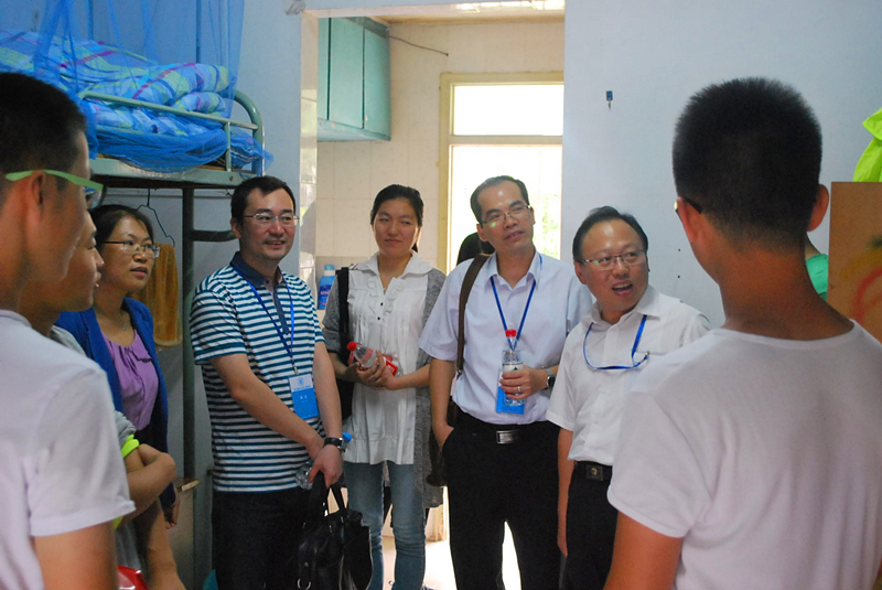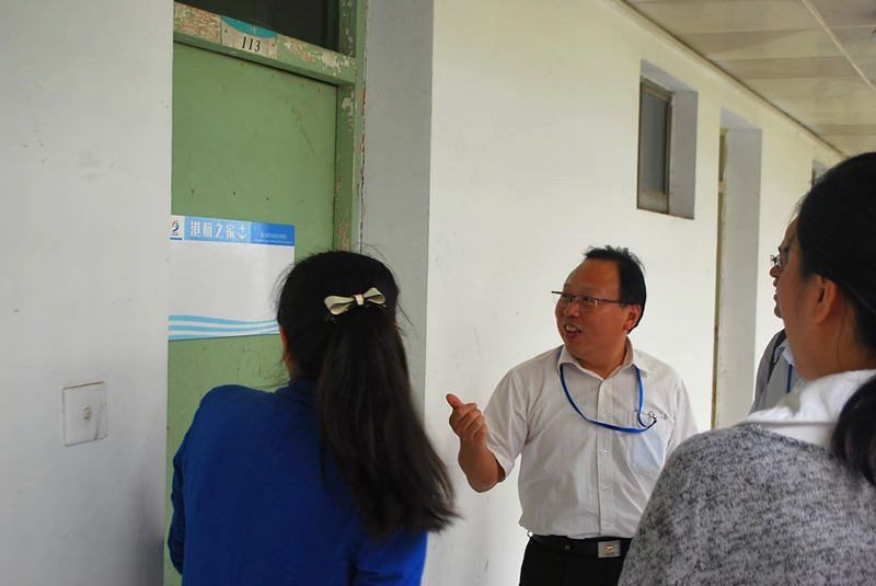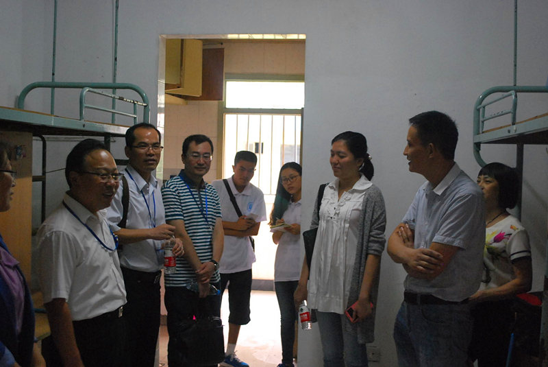百年校庆标识的门牌,四周配有蓝色波浪的图案,充分展现港航特色;中间部分留白,由学生自主设计。郑院长、胡书记等领导对此安排表示赞赏。来到新生宿舍,学院领导细心了解、耐心询问新生的家庭及现在的食宿情况,对现场了解到的问题给出了具体意见和建议,并鼓励新生努力克服困难,坚持不懈、勤奋学习。