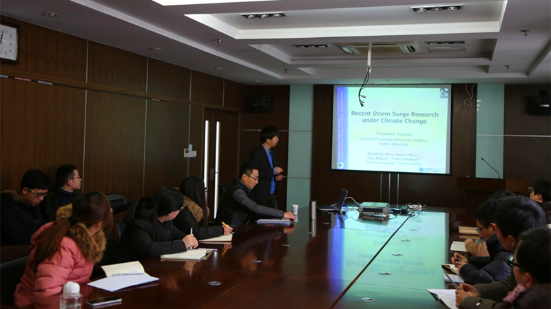 2016年1月21-23日,日本京都大学防灾所Tomohiro Yasuda博士应陶爱峰副教授邀请来欧洲足球赛程 开展学术交流。访问期间,Yasuda博士做了题为“Recent Storm Surge Research under Climate Change”学术报告,重点介绍了风暴潮数值模式的最新进展,分析总结了全球气候变化背景下,未来全球特别是西北太平洋气象及其影响下风暴潮演变特性,并与师生们进行了深入交流。学术报告后,参观了欧洲足球赛程 实验中心,蔡辉主任对实验中心及主要仪器设备进行了介绍,为后续研究合作奠定了良好基础。