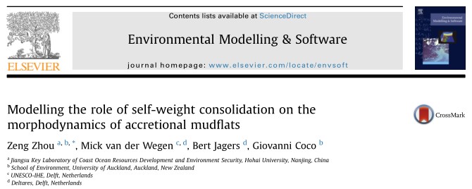 该成果发表于一区期刊Environmental Modeling & Software(近五年平均影响因子4.528),程序源代码公开,供业内需要的学者使用和后续开发。论文索引为Zhou Z., van der Wegen M., Jagers B., and Coco G. (2016) Modeling the role of self-weight consolidation on the morphodynamics of accretional intertidal mudflats. Environmental Modelling & Software, 76, 167-181, doi: 10.1016/j.envsoft.2015.11.002.