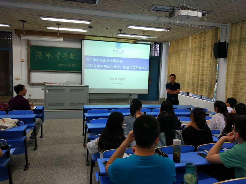 2017年6月8日晚, 2018届毕业生就业、职业相关问题交流会在管理楼101顺利召开。作为主讲人,我校学生处韦伟然老师为准毕业生们带来了一次受益匪浅的讲座。