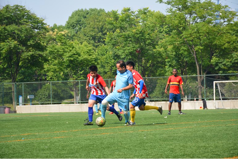 14:40整,郑金海院长为本场比赛开球,比赛在友好的氛围中开始。双方球员都展现了高超的技巧和激昂的斗志,双方你来我往,互不相让。经过两个小时的切磋较量,比赛最终以3:3平结束。休息时,老师们不仅慰问关心了同学们,还为他们出谋划策、进行了战术指导。