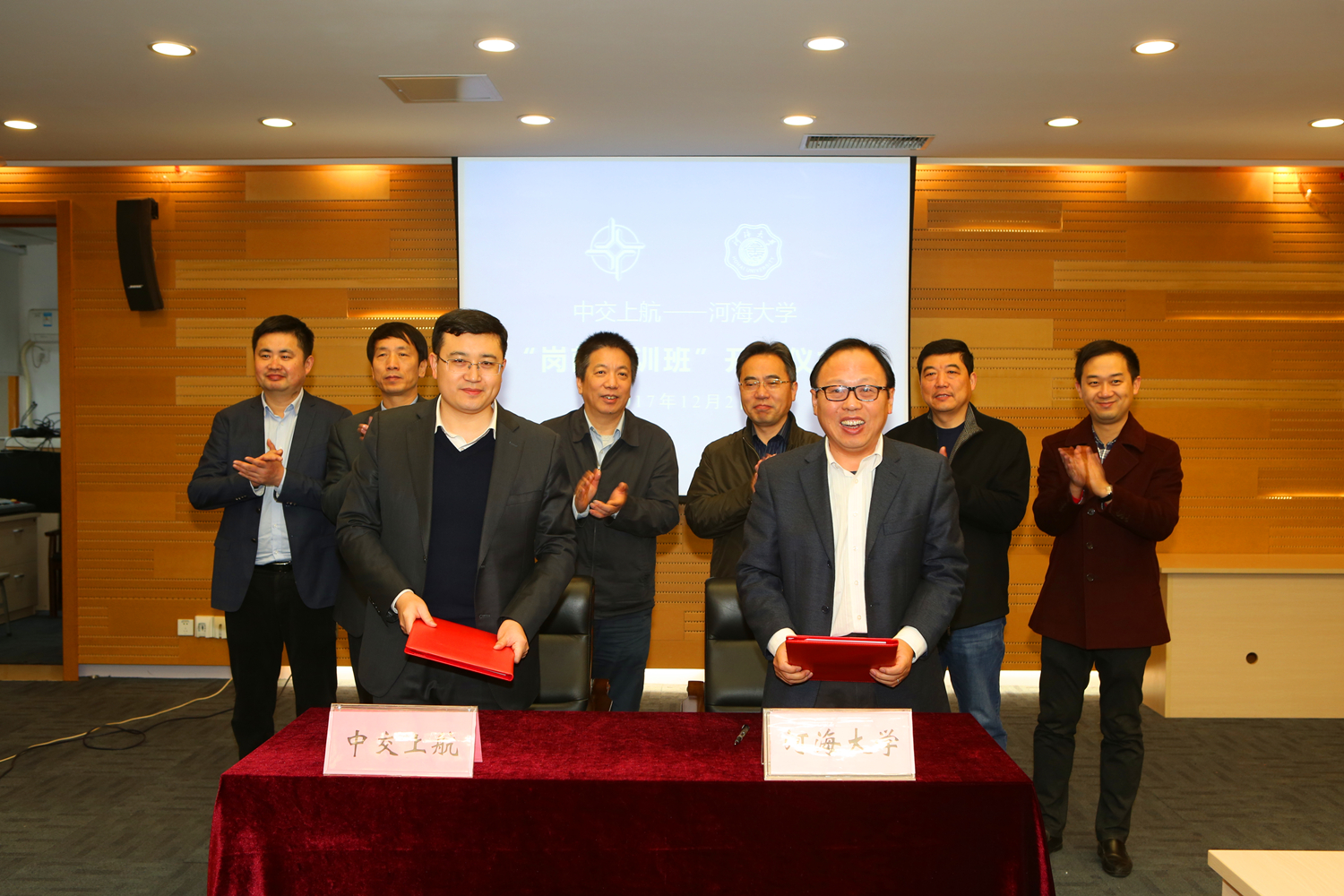 12月2日,中交上海航道局有限公司与我校在闻天馆203举行“岗前培训班”开班仪式。欧洲足球赛程 党委副书记郭继超、中交上海航道局有限公司副总经理曹湘喜出席仪式并致辞,欧洲足球赛程 党委书记胡忠华与中交上海航道局有限公司人力资源部副总经理万帮建分别代表双方签订了培训合作协议。中交上海航道局有限公司相关部门、子公司负责人,欧洲足球赛程 相关部门、学院负责人和培训班学员参加了开班仪式,欧洲足球赛程 副院长张继生主持会议。