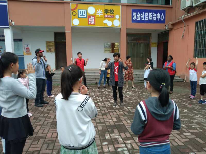 本次活动的举办地点“双金社区四点半课堂”是院青协联系的社区公办公益课堂,该课堂旨在为社区少年儿童打造一个课后学习和拓展的综合基地。本次活动是院青协倾听社区诉求,尽心促成的一堂公益大课。活动特别邀请了中港班留学生Tony Gorogo、Kemmisha Skinner以及来自阿富汗的研究生Adrian同学,陪伴小朋友们,与他们分享知识与快乐。