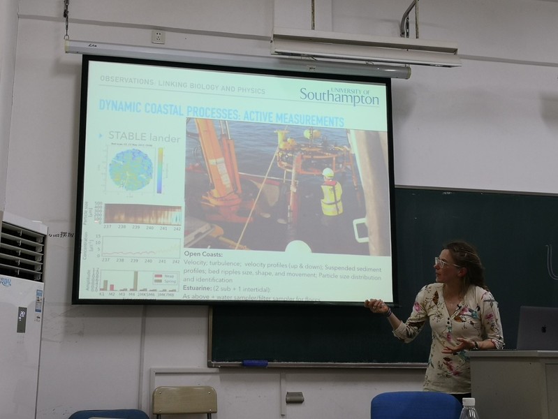 会上,与会学者围绕英中两国河口海岸泥沙运动、水沙交换、地貌演变等泥沙运动力学方面的学术热点展开讨论与交流,并就未来可能开展的项目合作、学术访问、研究生培养等问题交换了意见。期间南安普顿大学高级讲师Charlie Thompson 给留学生做了关于英国河口海岸管理“Blue Coast”的专题讲座。会后,一行人赴江苏沿海条子泥、斗龙港开展现场考察。