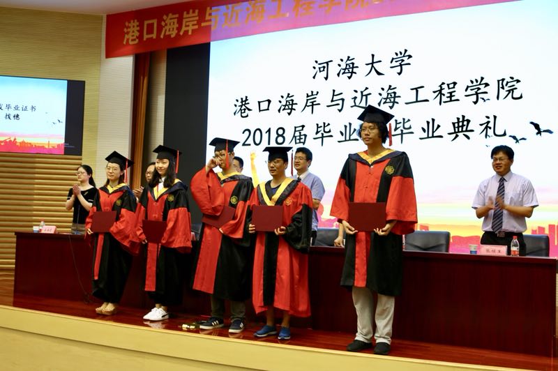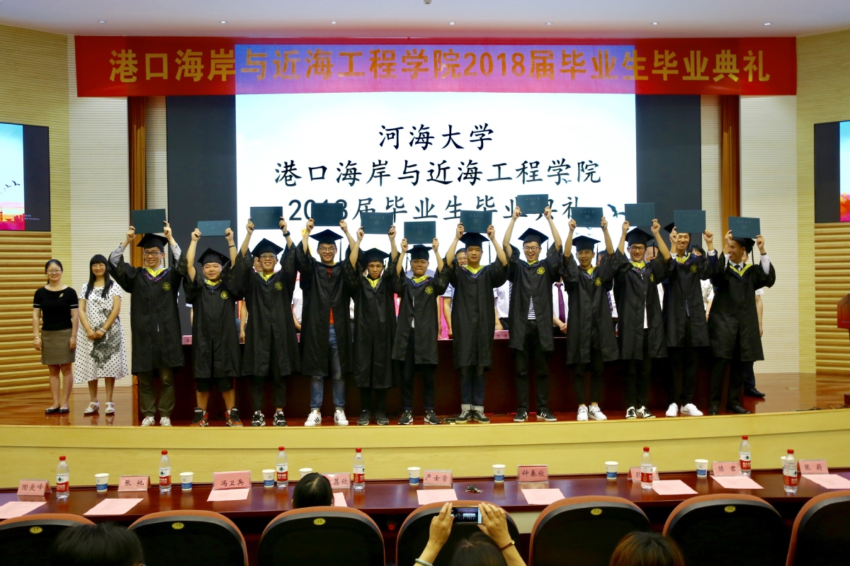 2018年6月15日上午,港航院2018届毕业生典礼在闻天馆108隆重举行,参加本次典礼的有嘉宾——长江南京航道局科技信息处林海处长,学院全体领导、各系所所长、教师代表、班导师、教学秘书、各年级辅导员、2018届博士、硕士、本科毕业生以及家长代表,典礼由姜海霞副书记主持。