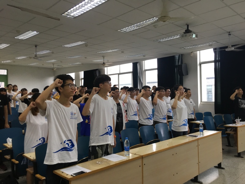 之后,王玲老师为各支实践队队长授旗,2017级港航3班罗梦岩同学带领全体同学宣誓,表达做好暑期社会实践的决心和信心。宣誓之后,团委实践部负责人刘宸斯同学对实践过程中的备忘事项进行了详细说明,解答了同学们的诸多困惑。