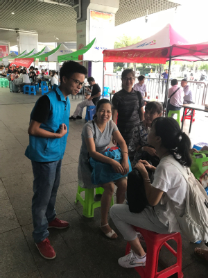 在今年的迎新工作中,港航学院承担了南京火车站南广场的迎新志愿服务工作。港航院2017级志愿者们身着统一的蓝色志愿者服装,精神饱满,热情洋溢,在南京站迎新接待点迎接新生及家长的到来,耐心地解答他们的问题,并积极引导,协助他们进行行李的搬运和装卸。他们热情的服务态度、高效的办事效率,赢得了新生和家长的肯定。