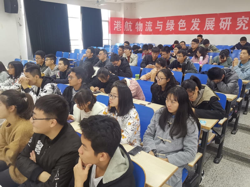 港口航道是国家经济建设的重要支柱,也是同学们未来就业的主要方向。首先,封教授向同学们普及港口的概念、港口航道的本质以及港口社会的经济单元理念,为同学们对港航专业及港航物流的宏观认识打下基础。随后封教授向同学们简要介绍中国各条航道线的概况,他阐述了港口建设的国际化交流局面以及向腹地与海向腹地的开拓建设需求,封教授指出经济高速发展下,国内港口建设现状和港航专业未来多学科交叉融合的发展方向。最后,他鼓励港航学子从容顺应大数据与物联网时代的更迭变迁;点明了学科交叉的必要性,希望学生广泛学习以培养多角度思考问题的能力。讲座上,同学们聚精会神,并积极与封教授互动交流。