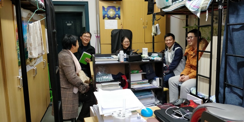 高书记依次走访了九舍414、416、418、420等宿舍,就毕业生学习生活情况与同学们进行了亲切详细地交流。高书记欣喜地了解到,414宿舍内有4位男生成功保研。高书记对他们严格要求、不断努力的态度表示赞扬,并询问了他们的学习经验和导师选择。四位同学均表示,尽早地确立大学目标和生涯规划至关重要,良好的宿舍学习氛围对他们的成长也大有俾益。在他们的带动下,港航4班除2位同学外,其他人均选择了毕业升学的道路。高书记向同学们了解了考研备考情况,更是给出了宝贵的政治学习建议。关于如何帮助备考的同学,班长徐伟杰表示班级目前已经建立了面向考研同学的大四课程学习帮扶机制,并正在准备模拟考试。此外,同学们还就目前学校内的学习环境与高书记进行了交流。在姜书记和季超老师的补充下,高书记了解到,港航院很早实施的“导师宣讲团”制度,对同学们毕业升学很有帮助。高书记也十分关心同学们的身体健康,与同学们做了交流,并就平时怎么锻炼的问题给出了自己的经验。