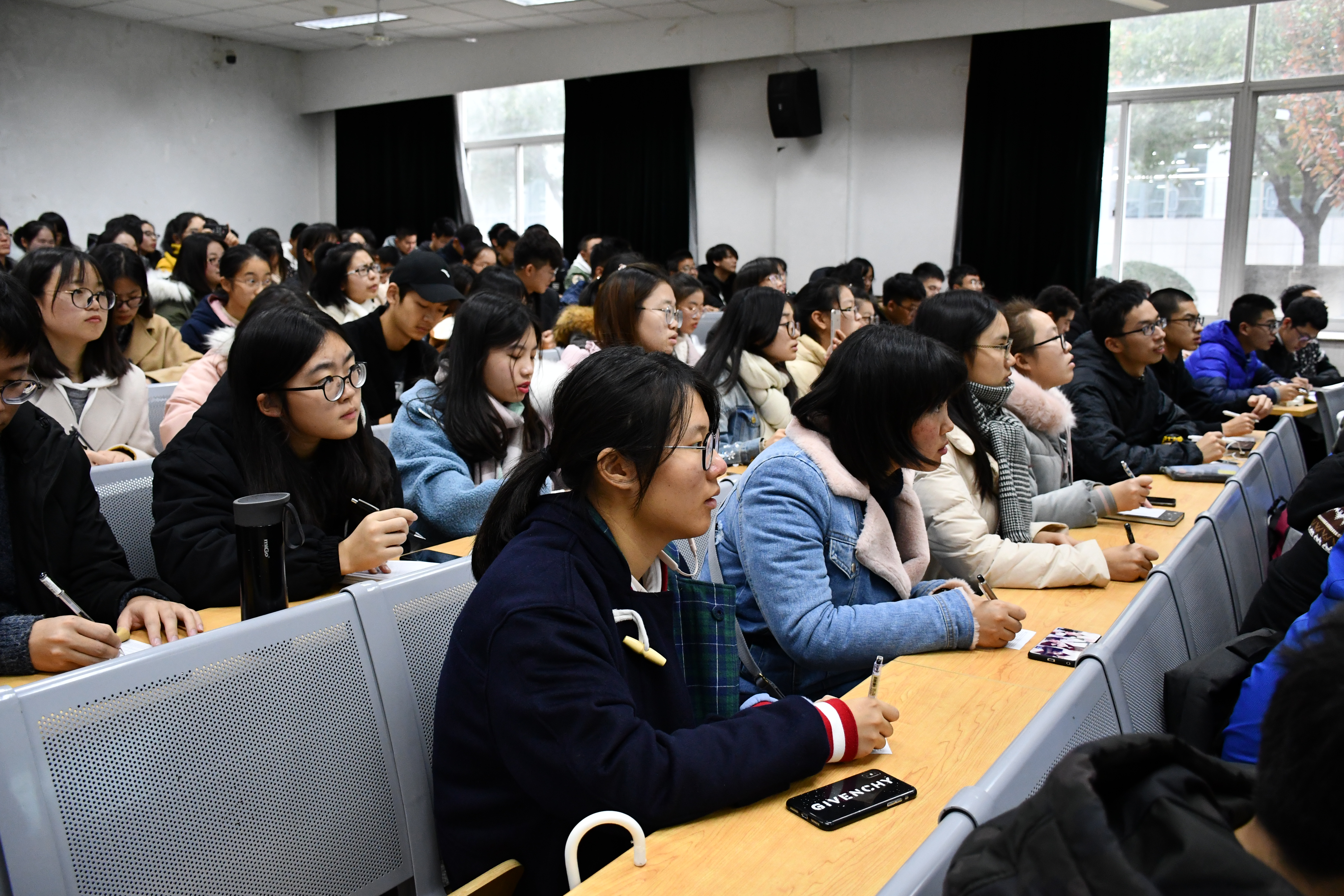 理学院党委魏有兴书记为港航院2018级本科生带来了一场职业生涯规划讲座。港航院党委姜海霞副书记出席讲座。