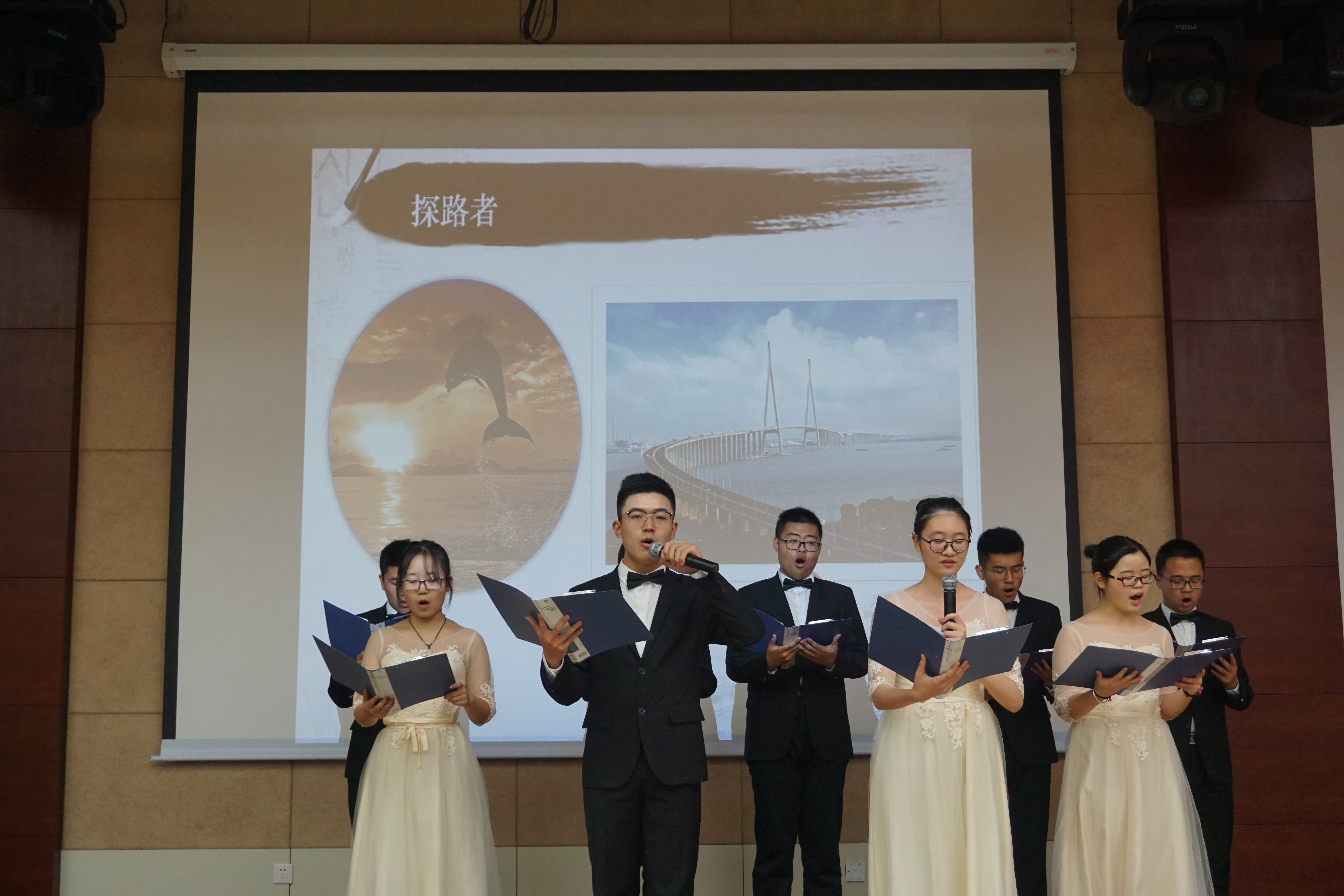 来自港航院、海洋院、力材院等学院的同学用演讲或朗诵的形式分别介绍了卢永昌、朱利翔、朱峰等校友的事迹,有讲述卢永昌三十多年坚守岗位的心酸历程和其从未改变的爱国初心的演讲《一生所爱,一以贯之》;有追寻朱利翔所践行的“牺牲个人,回报社会,奉献国家”人生准则的演讲《以工匠之名,铸中国之梦》;还有深情歌颂港珠澳大桥讴歌伟大祖国的朗诵《盛世中国》等。选手展示结束后,王宁可老师和陈智老师分别进行了点评,认为同学精神状态好、参赛作品创意好以及最终的活动成效好。