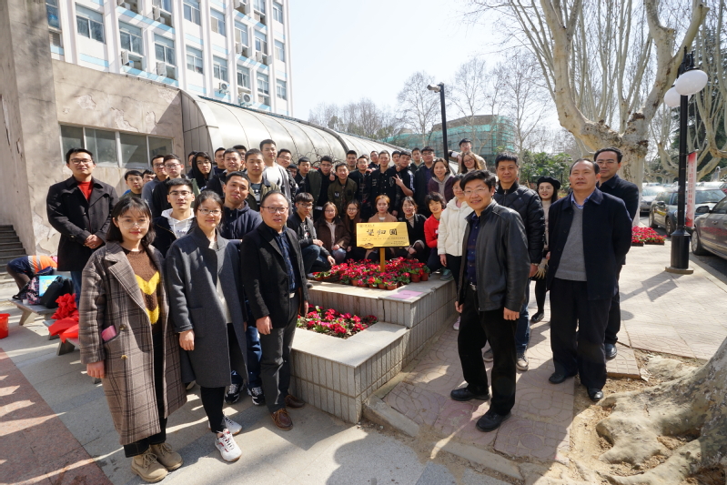 在“开工第一铲”仪式中,郭祥林处长、康红强书记、胡忠华书记、吴青山副处长、姜海霞副书记与学生代表在严恺馆台阶旁,齐力种下了一棵海棠树,为植树活动开启了良好的开端。随后,各组师生在专业技术人员的带领下正式开始了杜鹃花苗圃的种植。后勤处和学院的各位领导老师也纷纷“撸起袖子”,负责了1号花圃的栽种工作,为同学们树立了良好的榜样。在紧张有序的栽种后,由各组学生代表将写有2019届全体本科毕业生未来三年小目标的“梦想合伙人”红丝带系于园圃的树枝上,以见证同学们的成长。活动最后,康红强书记、郭祥林处长、胡忠华书记为“望归圃”举行了揭牌仪式,象征着活动圆满结束。