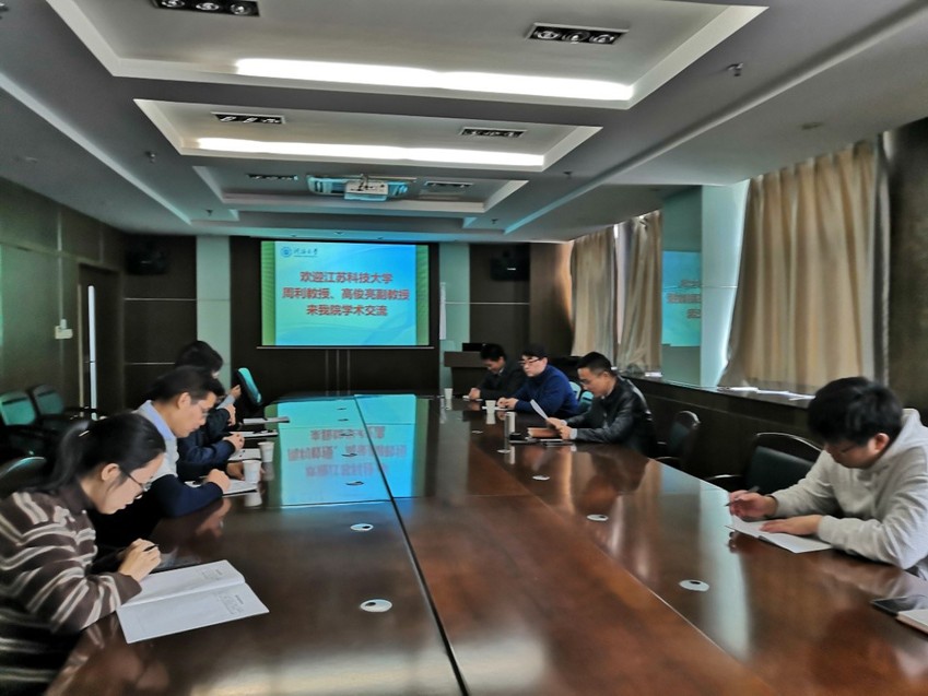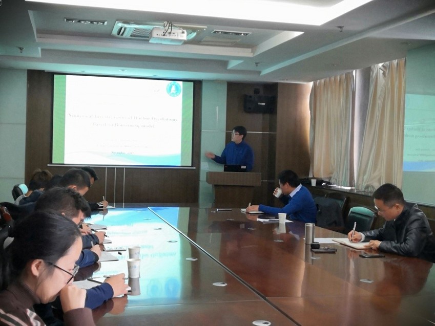 2019年11月12日上午,江苏科技大学周利教授、高俊亮副教授来欧洲足球赛程 进行学术交流。周利教授做了“极地船舶与海洋工程冰载荷预报”学术报告,高俊亮副教授做了“基于Boussinesq模型诱发的港湾共振数值研究”学术报告。龚政院长主持本次报告会。