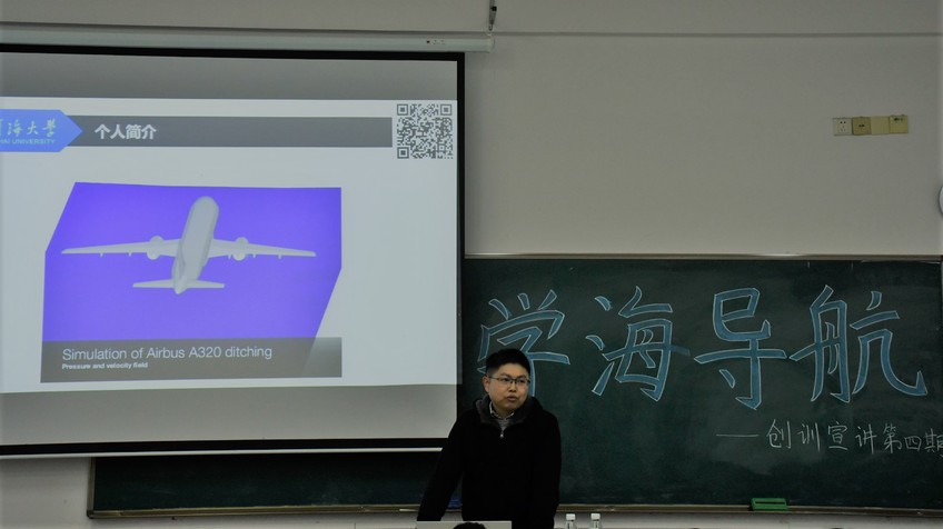 冯曦老师主要从事海岸方向海洋内水波动力的研究,她向同学们阐述了海平面上升对近岸潮能及潮波动力特征的影响、江苏“怪潮”的时空分布特征和动力机制研究等方面的课题。倪兴也老师向同学们介绍了无网格数值方法的理论改进、模式开发、河口海岸水沙动力过程的数值模拟研究和高性能并行计算数值模型的开发与优化等研究方向,展示了强非线性水体与工程结构物相互作用和SPH水沙耦合模型等研究成果。沈骁腾老师介绍了他丰富的留学经历,分享了关于河口环境泥沙与生态水利方面的研究,建议同学们主动学习数学语言、模型编程语言和专业英语语言。