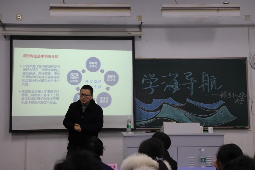 2019年12月20日下午四点,“学海导航——海洋资源开发技术职业生涯规划交流会”在江宁校区致用楼307教室举行,本次交流会邀请到海岸带资源与环境研究所陶建峰老师和陈永平老师作为宣讲嘉宾。两位老师分别从专业问题、留学问题和考研问题三个方面与同学们开展交流。