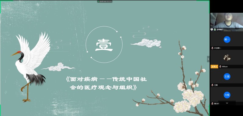 首先第一位是杨豪同学,一本《战疫日记》让我们看到了在这场没有硝烟的战役中,有无数多的英雄们与时间赛跑,与病魔较量,这既是一部人民的战“疫”日记,也是一段中国的战“疫”故事。然后第二位是李唯一同学的《瘟疫与文明》,结合历史上重大疫情事件,以及时代背景、社会政治、经济等多方面,配以多幅图片,增强了我们战胜疫病的信心。李炎幸同学的《生命缘》,把镜头对准战疫最前线,对准不畏挑战迎难而上的故事和瞬间,为打赢这场没有硝烟的“人民战疫”,记录精神,传递信心。之后是李穆楠子同学推荐的两本书《冠状病毒感染防护》与《面对疾病——传统中国的医疗观念与组织》,第一本书引领我们正确认识此次疫情的发生发展,力求对新型冠状病毒感染的相关知识进行详尽、科学、通俗的解释,第二本书凝结了著者近二十年来的心得体会,发掘出医疗史与近世中国社会和文化历史息息相关的地方。