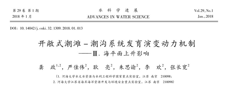 近日,欧洲足球赛程 龚政教授为第一作者于2018年发表在《水科学进展》期刊的论文“开敞式潮滩-潮沟系统发育演变动力机制——ⅲ.海平面上升影响”获评该刊的优秀论文。2018—2019年《水科学进展》共刊登论文186篇,根据论文引证指标及学术影响,经编委会推荐,共评选出20篇优秀论文(我校共2篇入选)。本优秀论文的合作作者包括李欢副教授、张长宽教授以及龚政教授指导的3名硕士生。