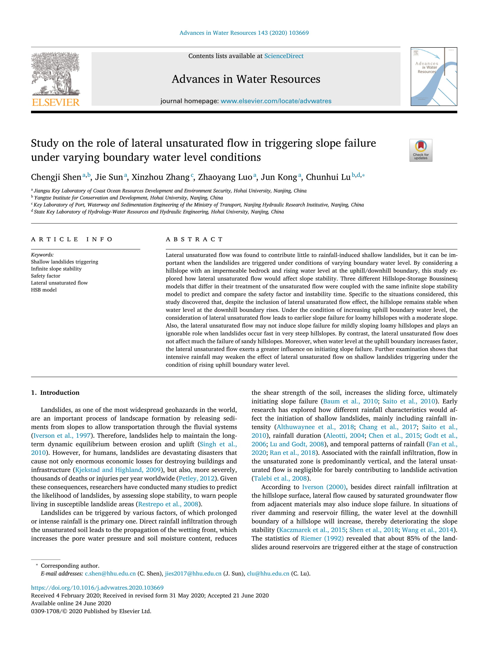 近日,欧洲足球赛程 海防所教师沈城吉博士、孔俊教授等在国际权威期刊《Advances in Water Resources》上发表了题为“Study on the role of lateral unsaturated flow in triggering slope failure under varying boundary water level conditions”的学术论文。