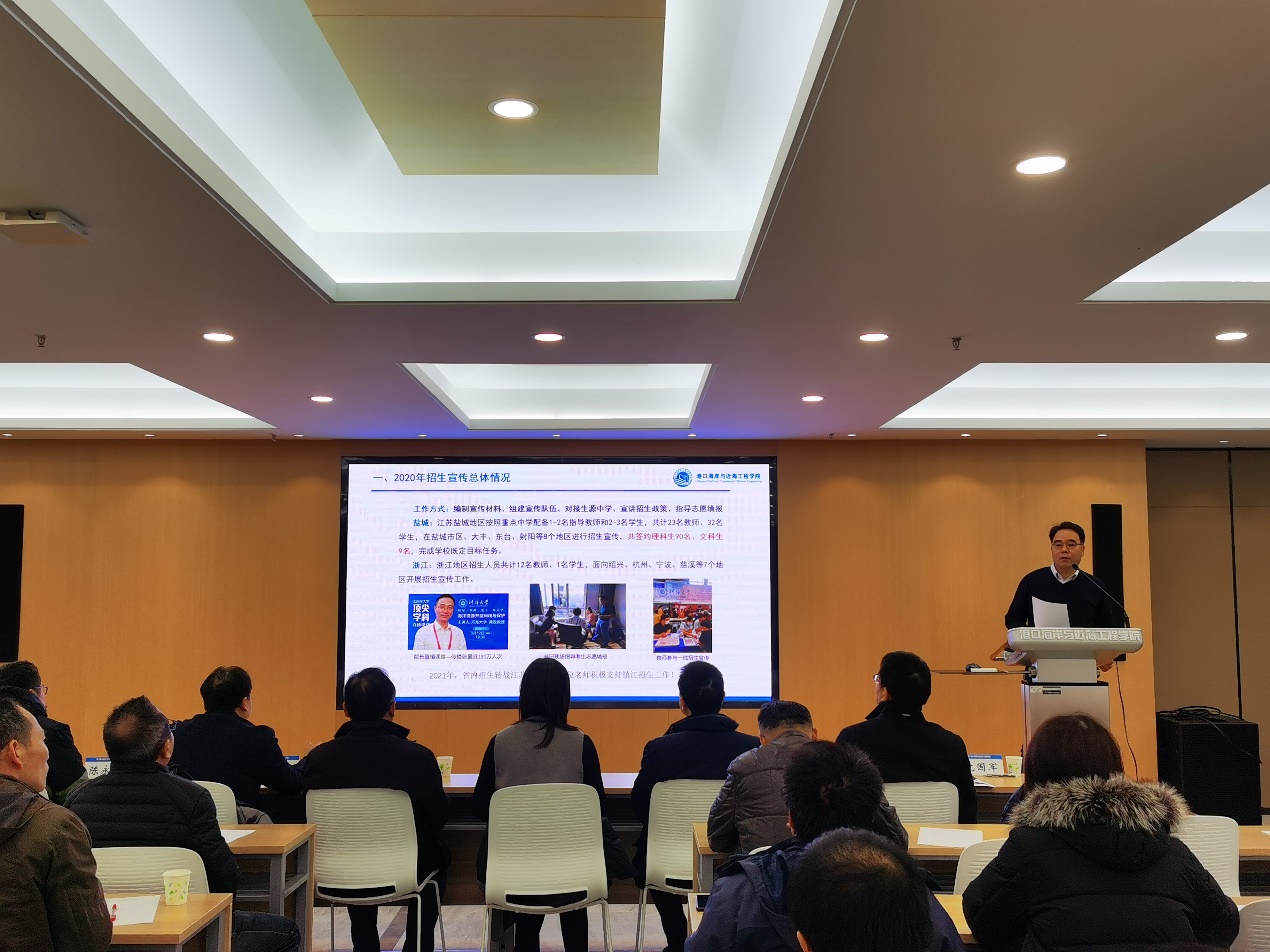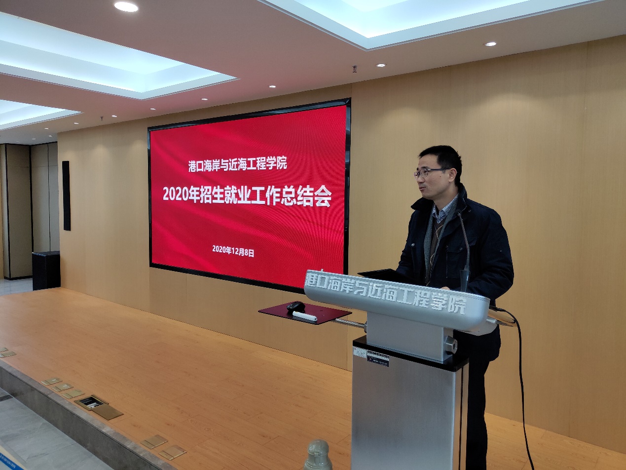 12月8日,港航学院召开2020年招生就业工作总结会,学生工作处处长吴红、院领导班子成员、系所负责人、班导师、招生宣传教师以及辅导员参加会议,会议由院党委书记胡忠华主持。