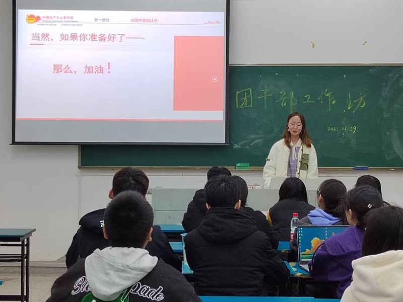 刘君伟同学分享了自己对于团干部工作的认识,并根据自己的工作经历与大家交流了经验感悟。同时,刘君伟针对如何平衡工作与学习的问题,鼓励大家把握好生活学习节奏,增强了团干部们的工作信心。