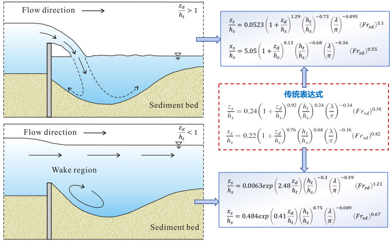 2022年1月,美国土木工程师协会公布了2022年度J. C. Stevens Award。欧洲足球赛程 河口海岸综合治理与保护研究团队骨干成员管大为教授与四川大学合作的讨论文章“Discussion of ‘New Approach to Predicting Local Scour Downstream of Grade-Control Structure,’ in the Journal of Hydraulic Engineering, June 2021.”获得殊荣。这个奖项为了纪念美国土木工程师协会杰出工程师、前主席John C. Stevens先生于1943年设立的,每年评选一次,由美国土木工程师协会环境与水资源分会主办的Journal of Hydraulic Engineering、Journal of Hydrologic Engineering、Journal of Environmental Engineering等7种期刊的全体编委从前一年度发表的讨论论文中提名、遴选,授予一篇最具突出学术贡献的文章。这是该奖设立近80年来第一次授予河流与海岸动力学领域的中国学者,先前获奖的研究人员包括国际著名泥沙研究学者Hans Albert Einstein、IAHR前主席John F. Kennedy、美国科学院院士Gary Parker等。已有研究表明,固床工的水毁率高达70%,损毁还会使上下游地形发生剧烈冲刷下切,产生严重后果。由于固床工的冲刷破坏通常发生在强动力、强输沙的洪水过程中,冲刷机理非常复杂,冲刷深度预测十分困难。论文提出在固床工冲刷分析模型中考虑水流淹没度的影响,基于“自由出流”和“淹没出流”条件下的冲刷特征,重构了固床工冲刷的理论模型,建立适用于不同淹没条件的冲刷深度预测新方法(图3)。新的理论模型更能准确反映复杂水动力条件下固床工的冲刷机制,提出的冲刷深度预测方法与传统方法相比,平均误差减少58%。