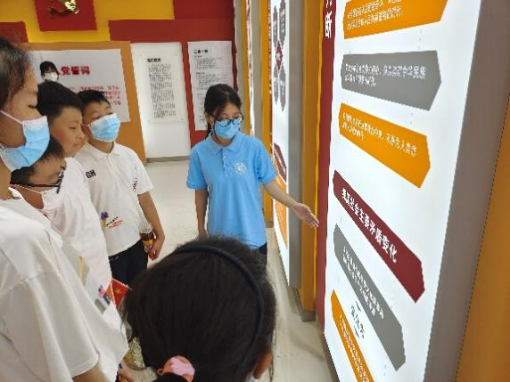 传承红色基因,牢记初心使命。志愿者们带领孩子们参观党史展馆,孩子们听着讲解,读着墙上的介绍,了解中国共产党百年的风雨历程,感受中国共产党带领中国人民取得的辉煌成就,体悟中国共产党员不畏艰辛,一心为民的精神品质。百年征程波澜壮阔,百年初心历久弥坚。今天的幸福生活是一代又一代的共产党人坚守初心、拼搏奋斗的结果。孩子们纷纷表示自己要努力学习,担当时代大任。