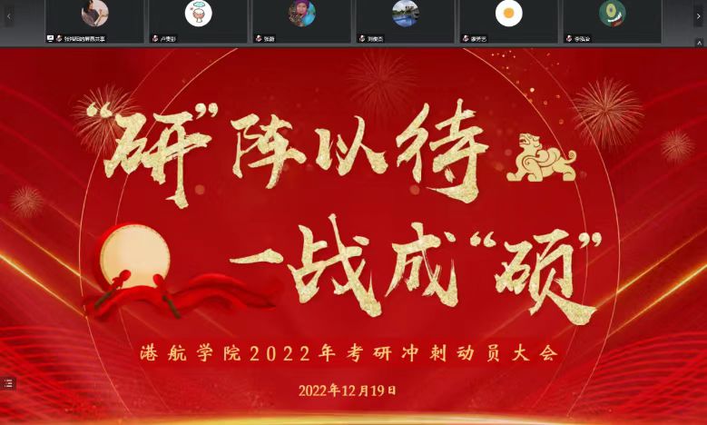 22年12月19日下午,欧洲足球赛程 2019级考研学生在线上举办“研阵以待,一战成硕”考研冲刺动员大会,港航学院张蔚副院长、2019级班导师、辅导员出席了会议。