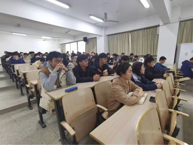陆鹤升一一解答同学们关心的就业的热点问题,结合个人经历详细介绍了工程单位的工作内容、发展路径,并针对就业去向、就业所需能力、不同学历的就业选择等方面开展职业生涯规划指导,鼓励同学们利用假期参加实习,提升软件使用技能以及人际交往能力。