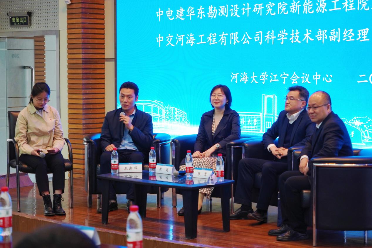 活动邀请到中交集团长三角区域总部副总经理、2005届校友周娟,中交三航局第三航务工程有限公司副总经理、1989届校友张雷,中电建华东勘测设计研究院新能源工程院土建室副主任、2011届校友王新峰,中交河海工程有限公司科学技术部副经理王涛,中交三航局第三工程有限公司人力资源部主管、副经理王珍。