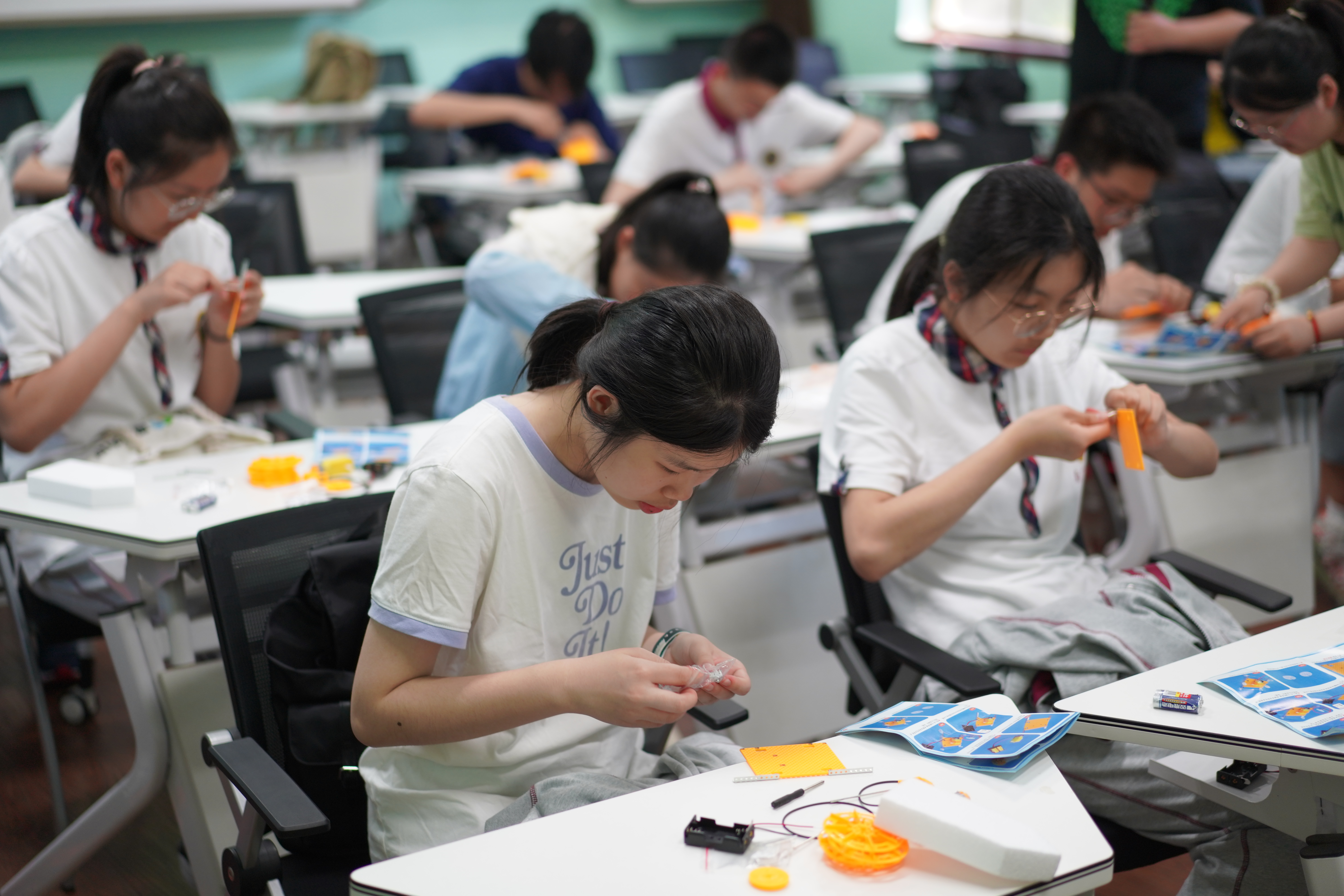 在教室里,南京一中高中生与欧洲足球赛程 学生交流大学生活,一起完成了海上装备模型拼装活动,帮助同学们在活动中感受实践探索的魅力,丰富了学生的水利常识,提升了其实践动手能力。