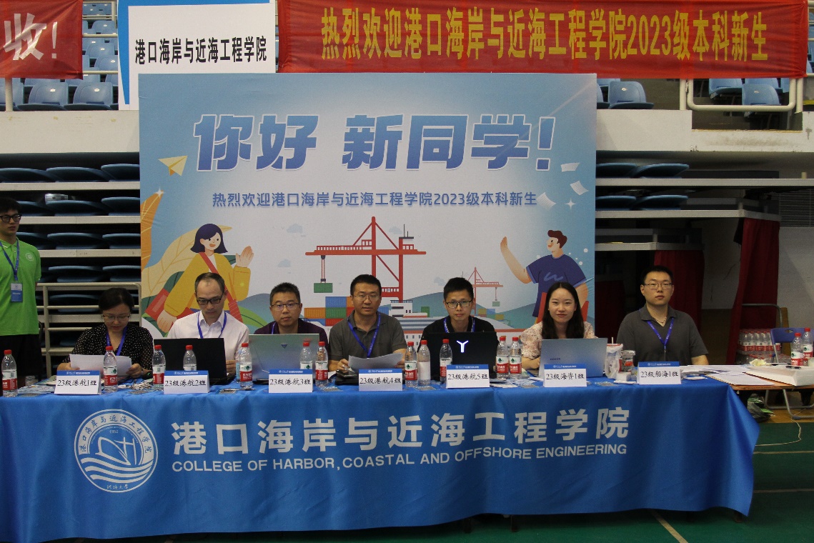 校党委书记唐洪武、校党委副书记郭继超、副校长郑金海,港航学院院长龚政、党委书记张俊基、副院长张蔚、党委副书记沈国军莅临现场指导迎新工作,领导们热情欢迎新生及家长,关心询问了新生报到情况,并合影留念。