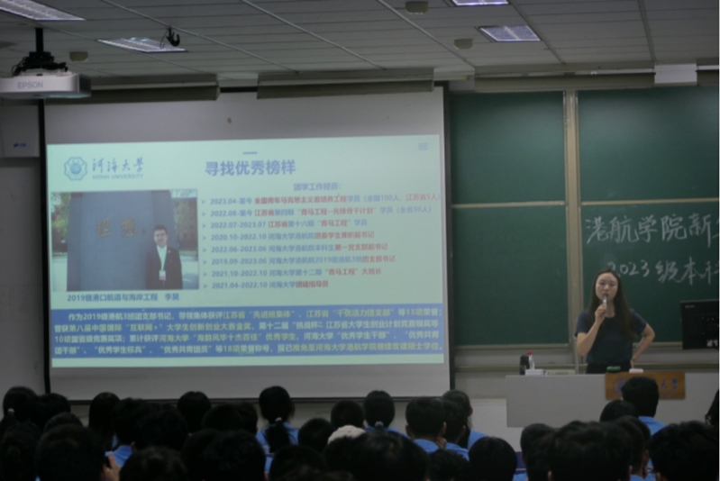 9月7号晚,港航学院2023级在致用楼101面向2023级本科生召开了“你好,同学!”港航学院新生见面会暨新生入学教育大会。港航学院党委副书记沈国军、2023级本科辅导员廖芳艺、2023级全体本科生出席本次大会。