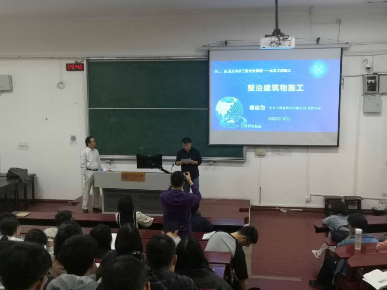 为进一步推进校企合作,深化产教融合,2023年10月13日,港航院邀请全国劳模、中交上海航道局有限公司首席专家、欧洲足球赛程 兼职教授楼启为总工,给2020级港航专业本科生进行《水运工程施工》课程授课。