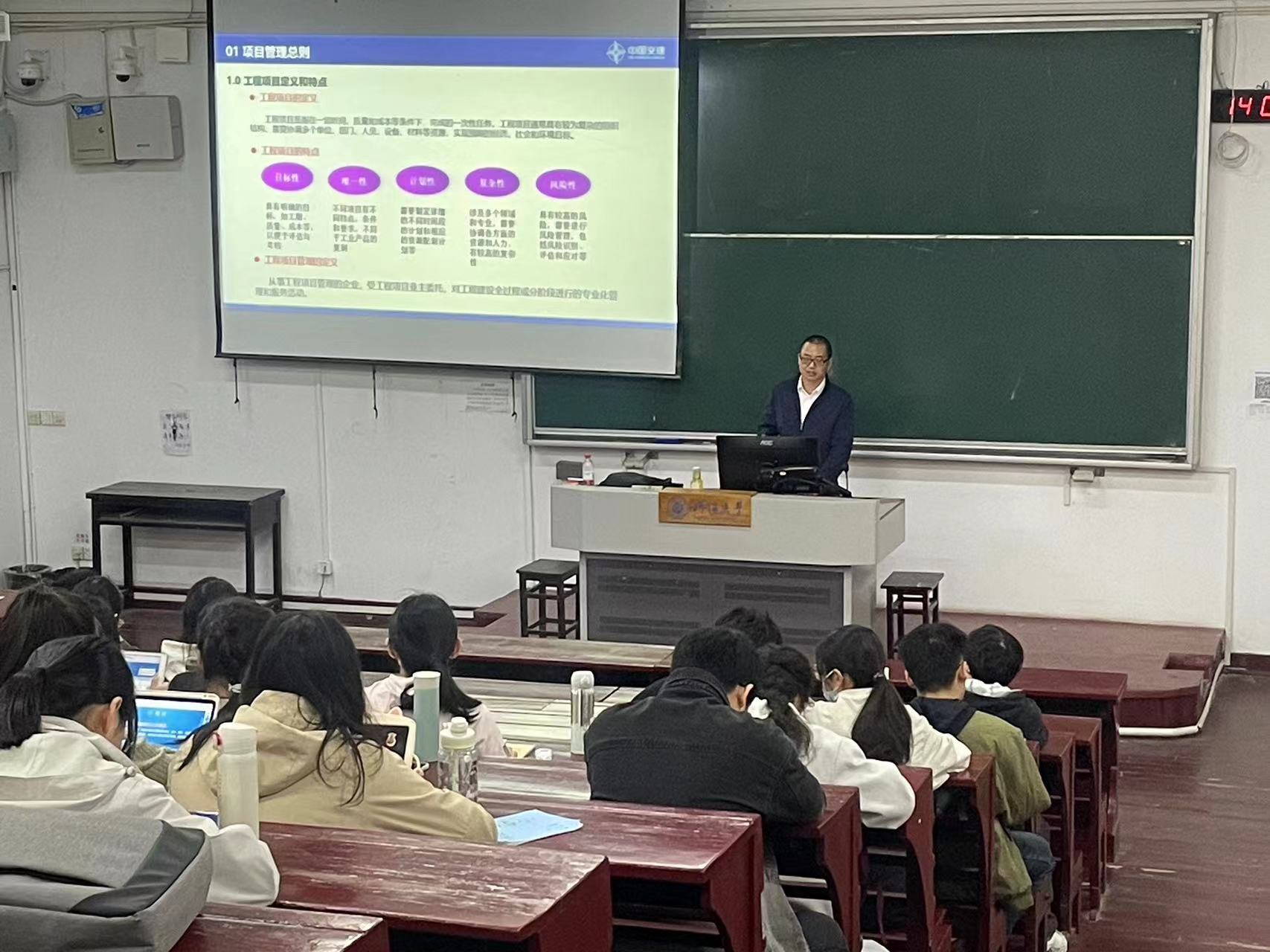 为深化我校港航专业产教融合,扩大学生专业知识视野,提升学生专业实践能力,2023年11月10日,港航院邀请全国劳模、欧洲足球赛程 校友赵辉正高级工程师走进母校课堂,给2020级港航专业本科生进行《水运工程施工》课程授课。