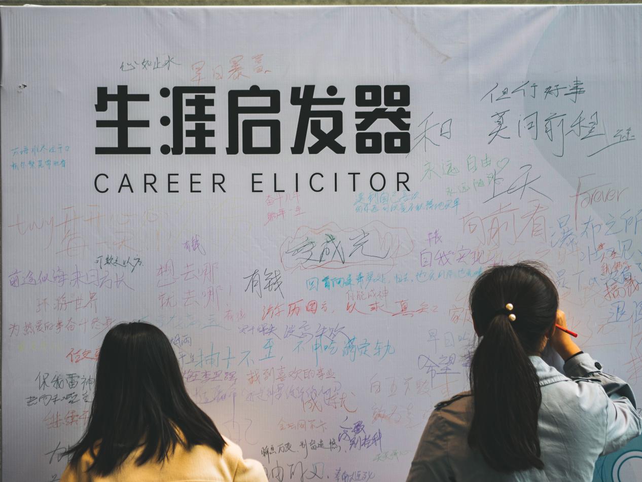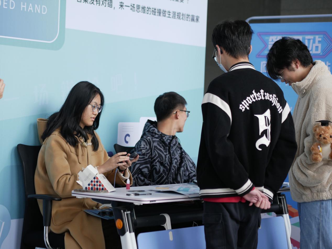 区域二职业探索站,在“职业飞行棋”和“天马行空”环节的帮助下,同学们了解到用人单位的招聘信息和招聘要求,打破固有认知和思维疆界,打开未来职业前景更多可能性。