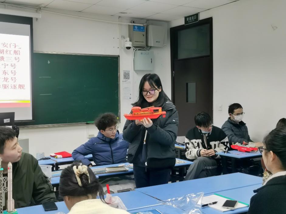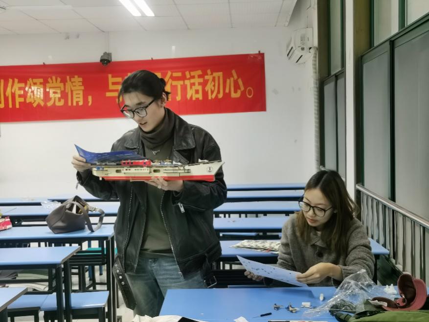 一个小时之后,各小组完成了整体上的呈现。而后,每个小组都对自己所拼装的拼图模型进行了讲解,带领大家了解自己的模型和它背后的故事。从南湖红船党的诞生,再到天安门上中华人民共和国成立,揭开中国历史新的篇章;从雪龙号破冰前行,再到辽宁舰、山东舰勇立潮头、驰骋万里海疆,支部党员切身体会到从中国共产党诞生的开天辟地的深远意义与新时代神州大地涌动着的生机与活力,感悟到为祖国建设贡献青春力量的责任与使命。