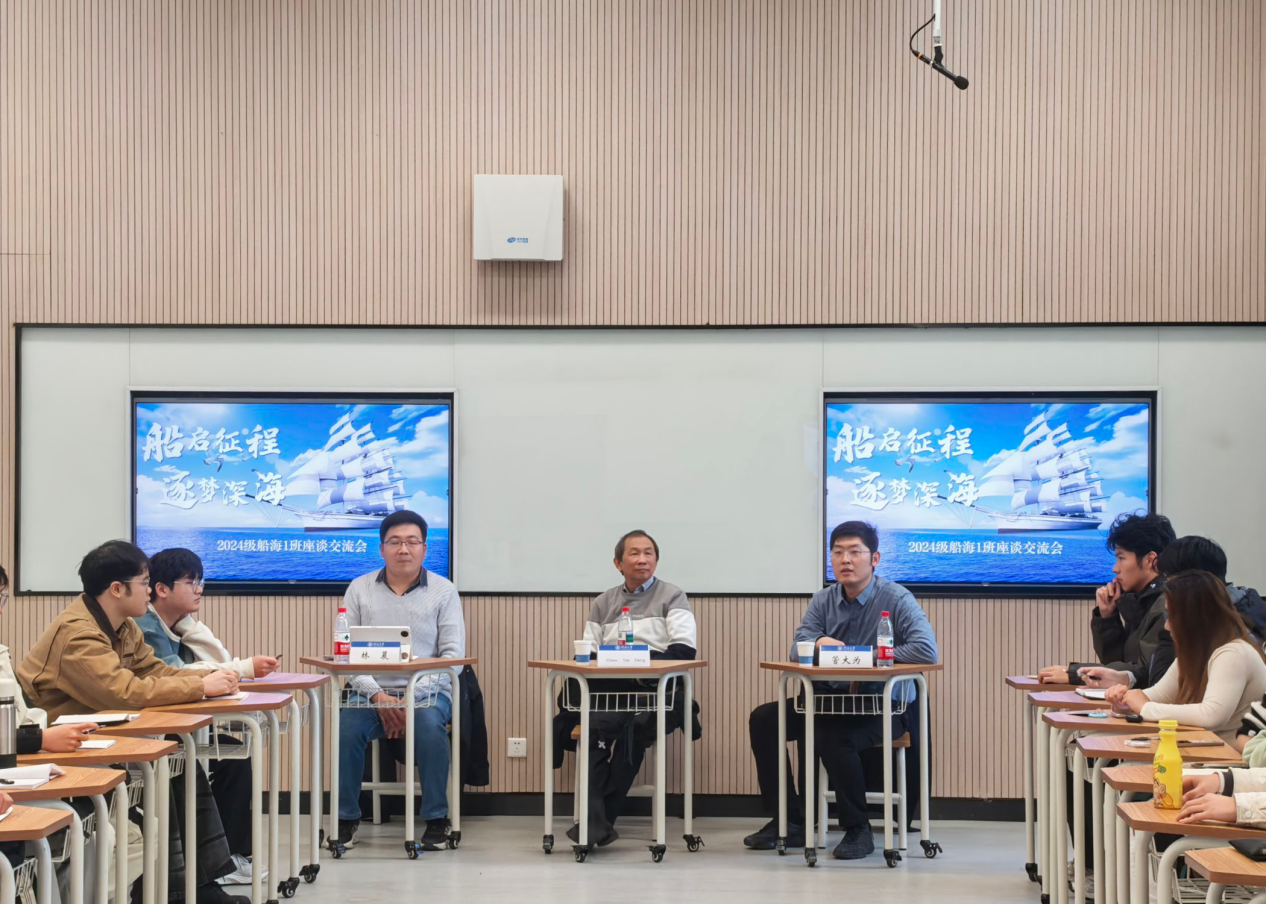 12月3日,领导干部联系学生座谈会暨学术报告会在常州校区2号楼E104举行,港航院副院长管大为、南洋理工大学Chiew Yee Meng教授、辅导员林晨和2024级船海1班全体同学参加。