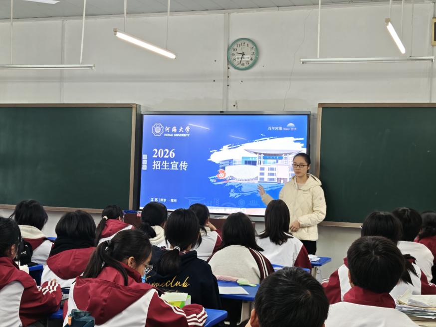 2026 年 1 月 28 日,港航院 “天津归雁” 团队赴天津市海河中学开展源泉工程暨 “朋辈导师回校宣讲” 活动。天津市海河中学是天津百年老校、市级首批重点中学,近些年985 与 211 院校综合录取率约40%。团队以线上线下相结合的形式开展宣讲、访师等活动,展现河海学子风貌与人文温度。