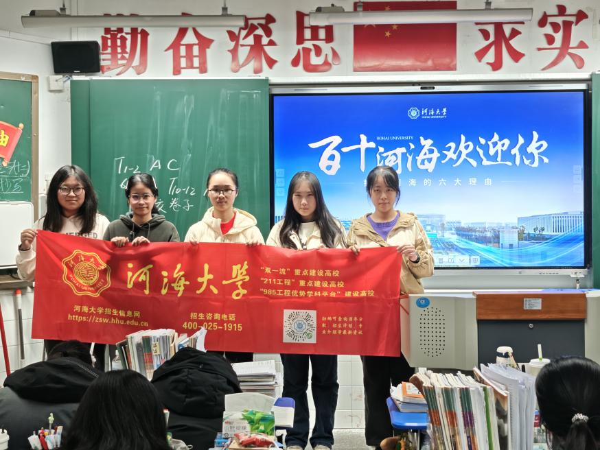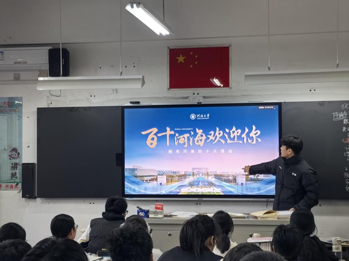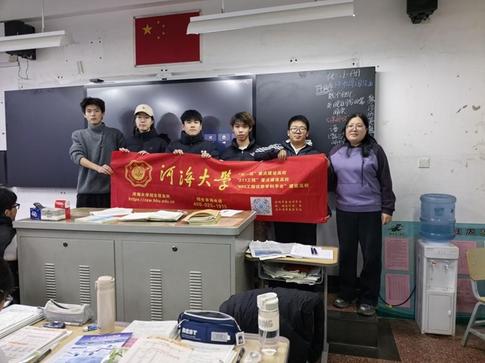 宣讲结束后,团队分组拜访任课教师,向恩师表达诚挚谢意。当晚,成员借助腾讯会议开展线上宣讲,面向高一至高三未能到场的学弟学妹,深入解读河海学科特色与招生政策,并推荐学校招生办官网,助力学子全面了解河海文化。