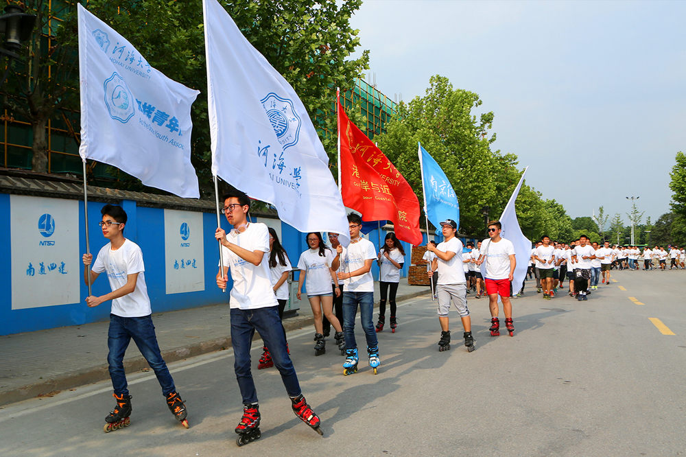 启动仪式结束后,郭继超书记带领300余名河海师生及兄弟学校师生共同参与慢跑活动。慢跑活动中,同学们依次经历了泡沫跑、彩虹跑、问答跑等环节,寓意着“美丽的海洋生态(泡沫跑)由于人类的活动,被严重污染(彩虹跑),人类经过反思,逐渐关注海洋知识,站出来志愿成为一名光荣的科普志愿者(问答跑)。