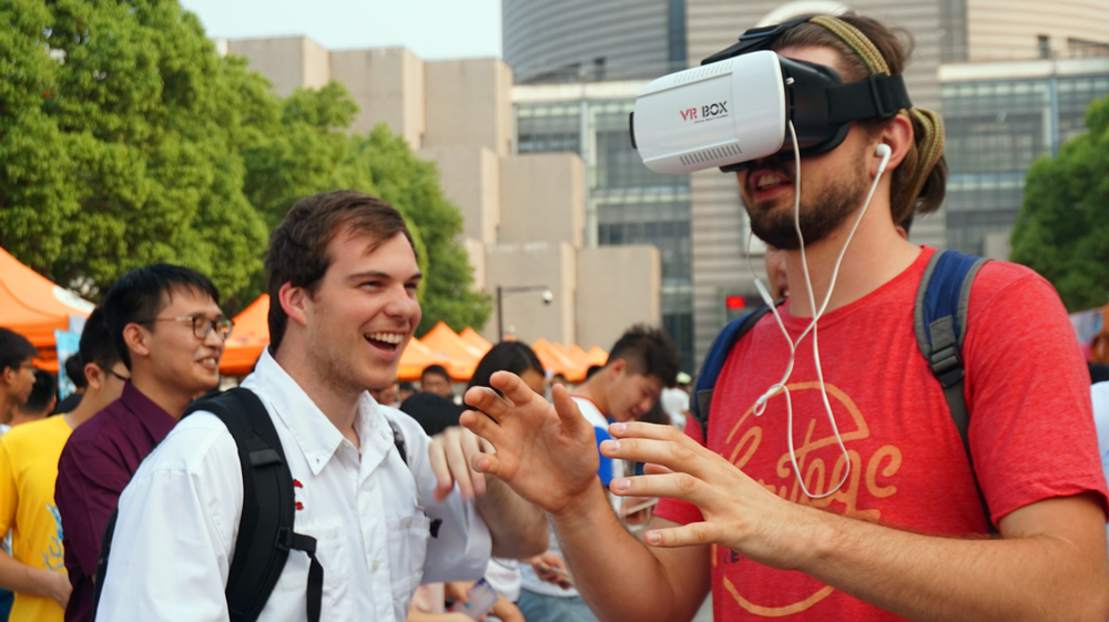下午4点,游园会活动正式开始,此次学院的“VR”展台活动分为:扎气球、你画我猜、表情包大作战和“VR”展台四个部分。扎气球活动考验着参与者的专注度和维持平稳心态的能力,你画我猜与表情包大作战则充分考量着参与者之间的默契与信任,一系列趣味十足的心理小游戏吸引了许多同学前来参与,而高科技VR更是将本次游园会推向了高潮,同学们争相前来体验,甚至吸引了不少外国友人,让欧洲足球赛程 的展台充满了欢声笑语,一跃成为人气最高的展台。